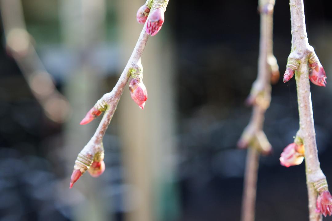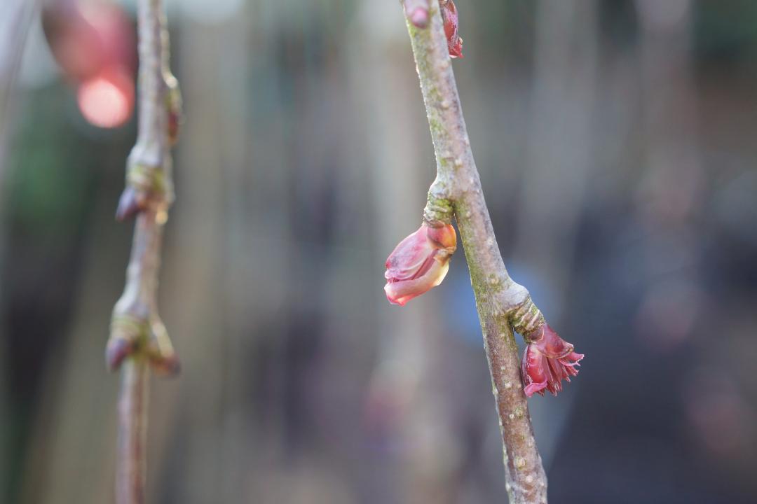 Auffallend sind die dicken roten Blütenknopsen und zahlreichen Blüten im Frühjahr.